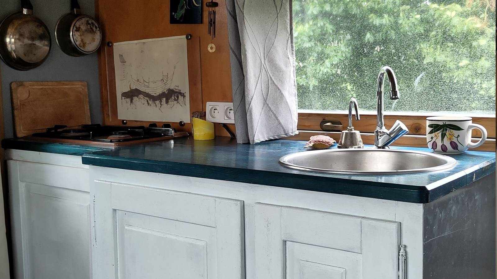 La roulotte Figue accueille un lit double (1,90m x 1,20m), une banquette (1,75m x 0,64m), une mini penderie. Hauteur de plafond : 1,79m. Eclairage basique par panneau solaire. Espace cuisine avec gaz , évier (avec jerrican et pompe à pied) et table coulissante. Poêle à bois installé en hiver. Table de jardin à côté de la roulotte. Accès à la salle de bain, WC, WIFI dans la maison.