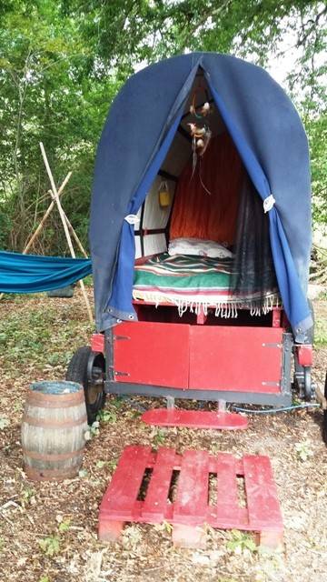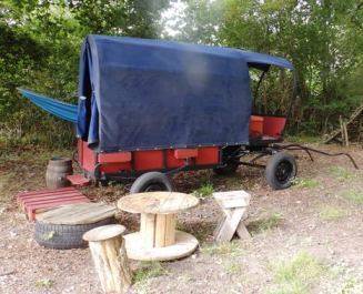 Une nuit originale pour une seule personne, bien à l'abri dans ce petit chariot bâché.