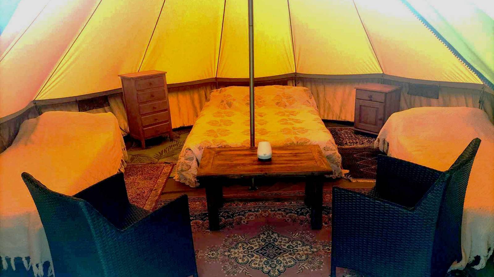 Une nuit en famille ou entre amis pour 4 en pleine nature dans cette tente bell ou cloche très confortable