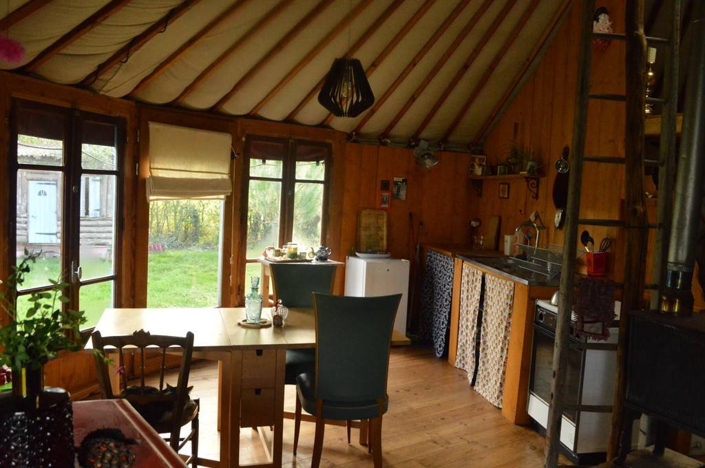 Jolie yourte de 50m², un espace tout en rondeur pour prendre le temps et s'offrir un moment singulier en famille, en couple ou en solitaire, ainsi que pour des résidences artistiques.