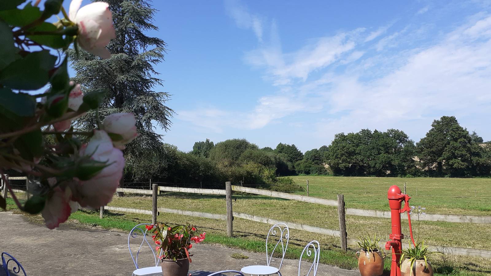 Un pré touche à la chambre et est équipé pour recevoir vos chevaux.