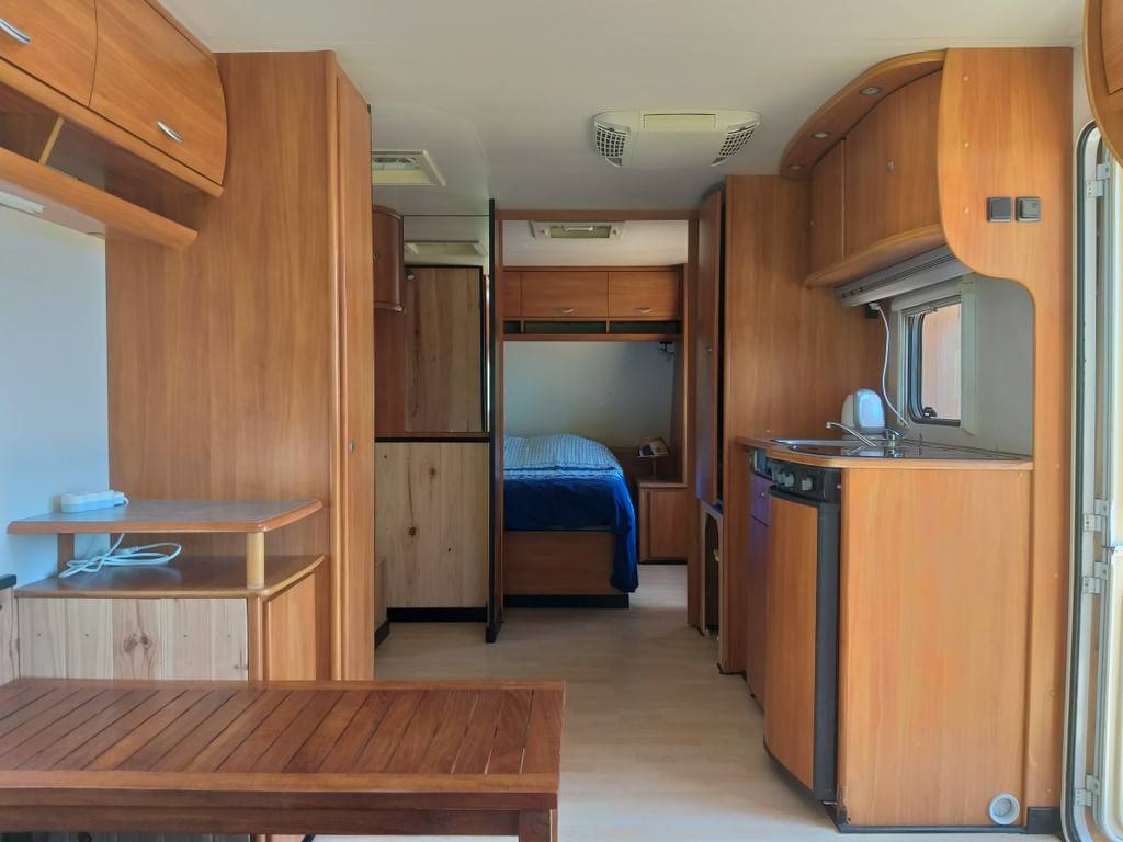 Elle est doublée de bois afin de préserver de la chaleur, et il y a une grande terrasse pour manger dehors avec vue très belle sur la vallée. Cuisine équipée privée dans l'hébergement et accès aux sanitaires communs "traditionnels".