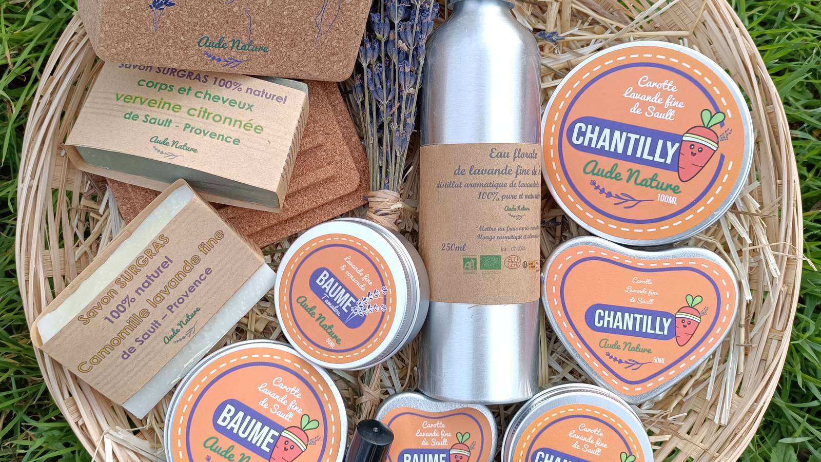 Quel rapport y-a-t'il entre une carotte, une lavande fine, un piment, un calendula, une consoude et une camomille? Ce sont toutes des plantes, d'accord mais surtout elles ont toutes des bienfaits prouvés pour notre peau ! Etant à la fois maraichère et productrice de plantes aromatiques, j'ai décidé en 2024 d'associer les bienfaits de ces plantes en créant des cosmétiques de la ferme. Aude Nature, nom de la marque regroupant mes produits, regroupent toute une gamme de cosmétiques et un baume "tamalou" pour vous chouchouter. Ils sont élaborés en partenariat avec l'atelier technologique de cosmétique du lycée agricole de St Flour, sur qui je peux compter pour m'épauler sur les formulations, la fabrication, les tests d'innocuité et les autorisations de mise sur le marché. C'est une belle aventure qui donne aussi du sens à mon travail agricole. Rien ne me fait plus plaisir que les retours enthousiastes des clients sur les différentes foires ou à la ferme. Vous pouvez aussi retrouver l'ensemble de la gamme, ainsi que les légumes sur mon site audenatureprovence.com
