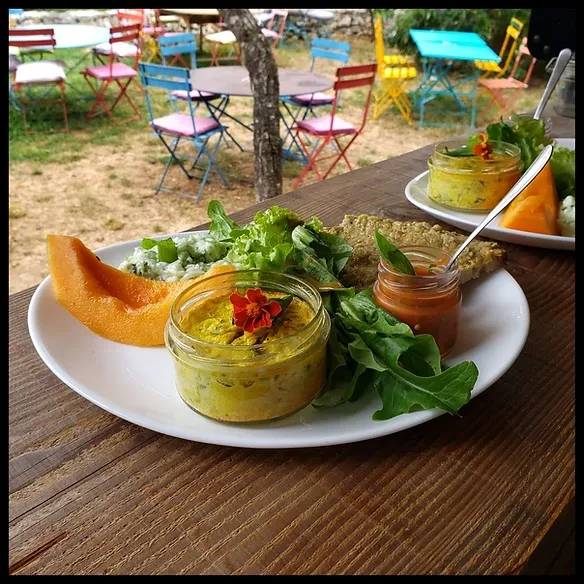 Nous proposons (sur réservation) une cuisine végétarienne préparée principalement avec les produits de la ferme labellisés "Nature & Progrès", donc cultivés et produits sans AUCUN intrants chimiques. Merci de nous préciser à l'avance les besoins spécifiques (sans gluten ou allergies).
