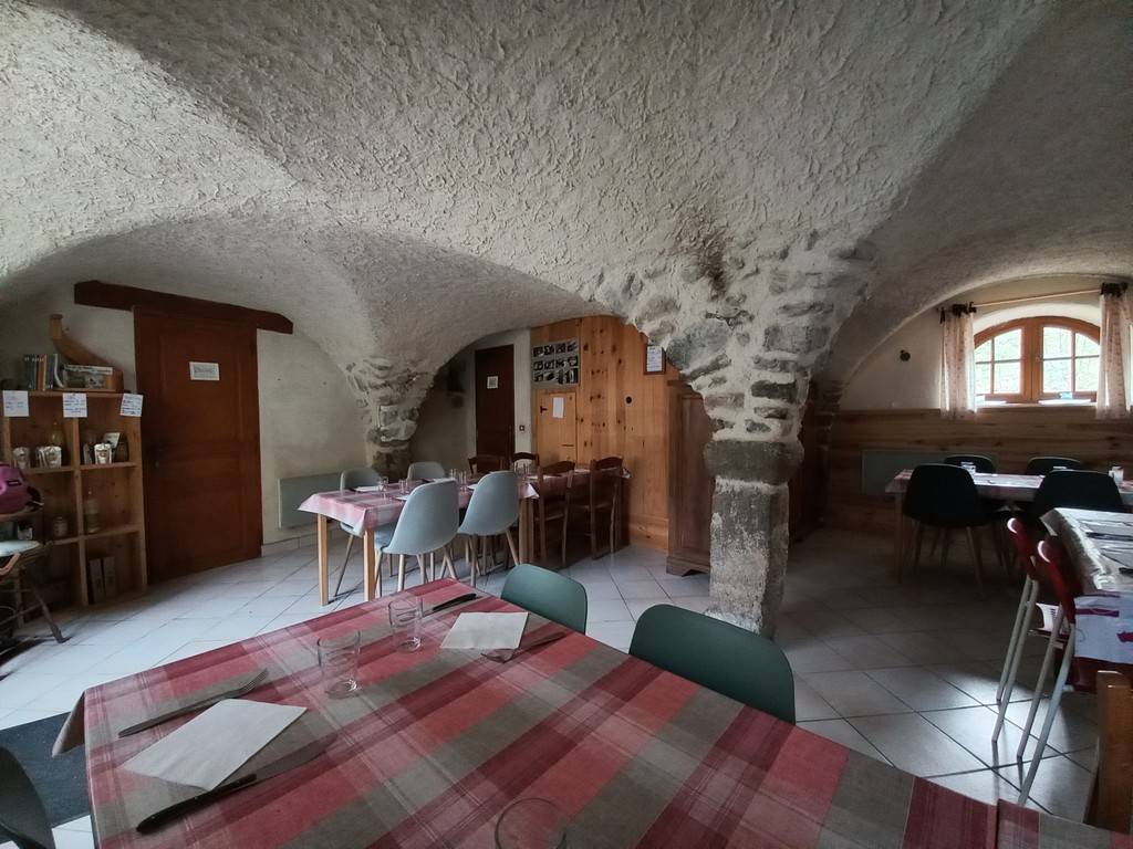 Nour vous proposons des repas tous les soirs à notre table paysanne, repas élaborés à partir de produits locaux et/ou bio, pour une cuisine 100% maison et un menu unique (entrée, plat et dessert) qui change chaque jour. (Possibilité de menu végétarien sur demande). Vous serez servi dans une grande salle voûtée ancienne bergerie entièrement restaurée.