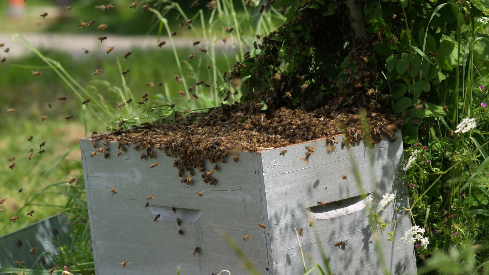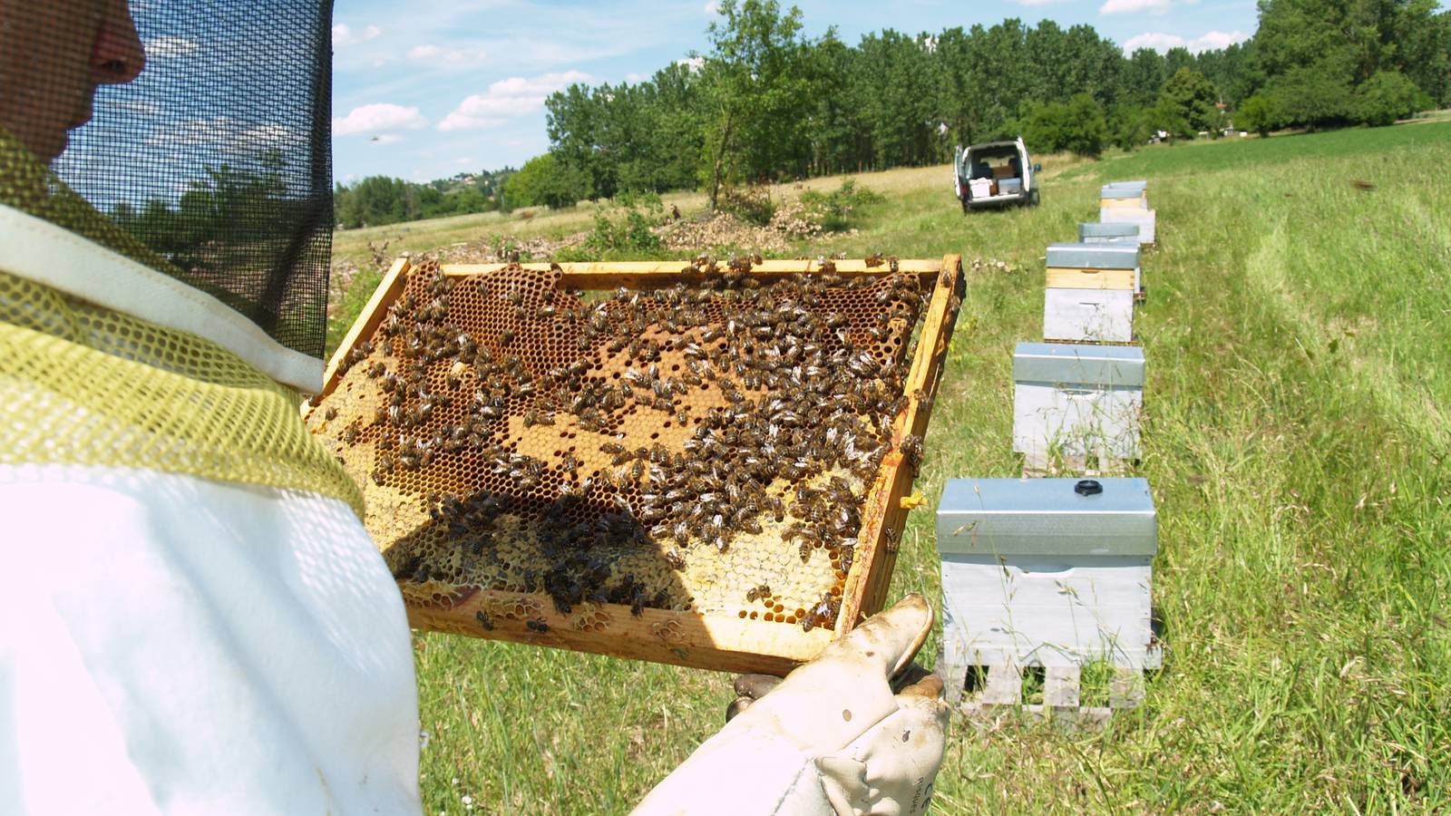 Notre rucher fixe constitué d’une vingtaine de ruches est accueilli au sein de la ferme.
