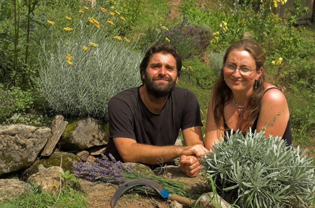 Paysans militants. Production de plantes aromatiques et médicinales : tisanes, huiles de soin, baumes, hydrolats... et pépinière spécialisée. Ferme en permaculture. Ce couple passionné de plantes vous accueille dans un cadre idyllique, vue imprenable sur les collines boisées de la vallée. Autonomie en eau, électricité et chauffage, agro-écologie (labels SIMPLES et Nature & Progrès), auto-constructions écologiques. Table Paysanne végétarienne où les plantes sont à l'honneur. Convivialité, générosité, calme.