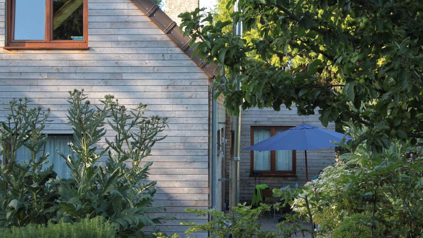 Notre maison est entourée d'un beau jardin avec un verger de pommiers à cidre en un potager bio luxuriant. Nous accueillons nos hôtes sur notre projet de permaculture Idunn. Nous cultivons des plantes aromatiques, médicinales ainsi que des légumes perpétuels et anciens. Les deux chambres ont une salle de bains privative avec douche, des lits et fauteuils confortables et internet. Le matin, Anne et Kris vous choient avec un petit déjeuner varié composé de pain, de confitures maison et de produits du jardin. Quand le temps est agréable, votre repas peut être servi sur la terrasse.
