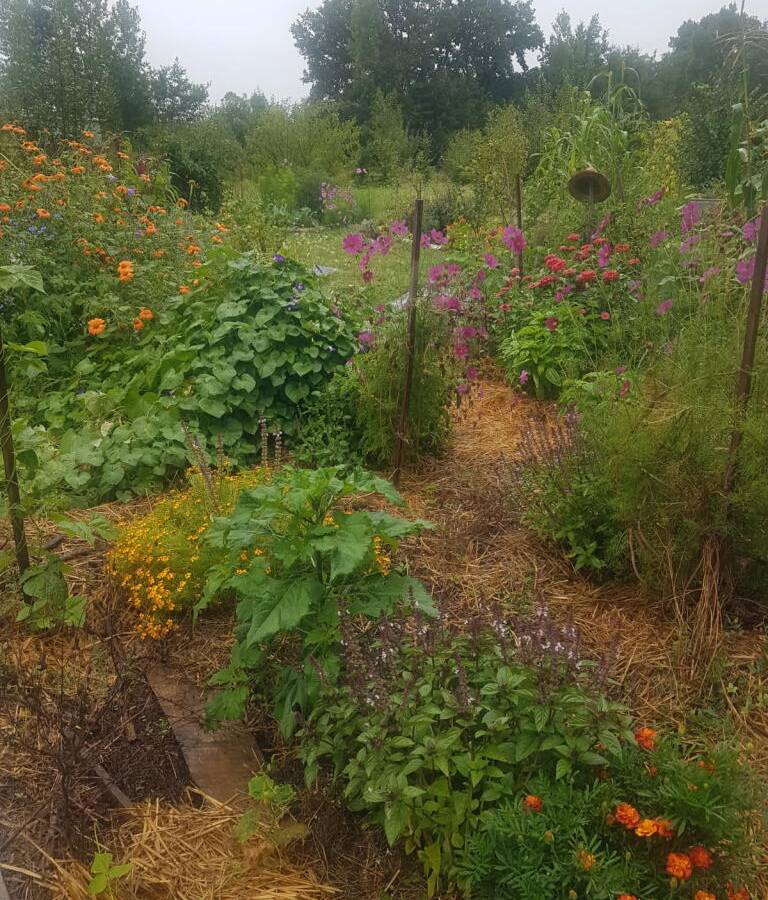 Ancienne ferme-longère avec un champ de 2,5h devant. Vergers ainsi que des planches potagères et petits fruits. Forêt comestible en place. Poules. Table d'hôtes avec produits paysans. Couchage possible en roulotte (lit de 120cm).