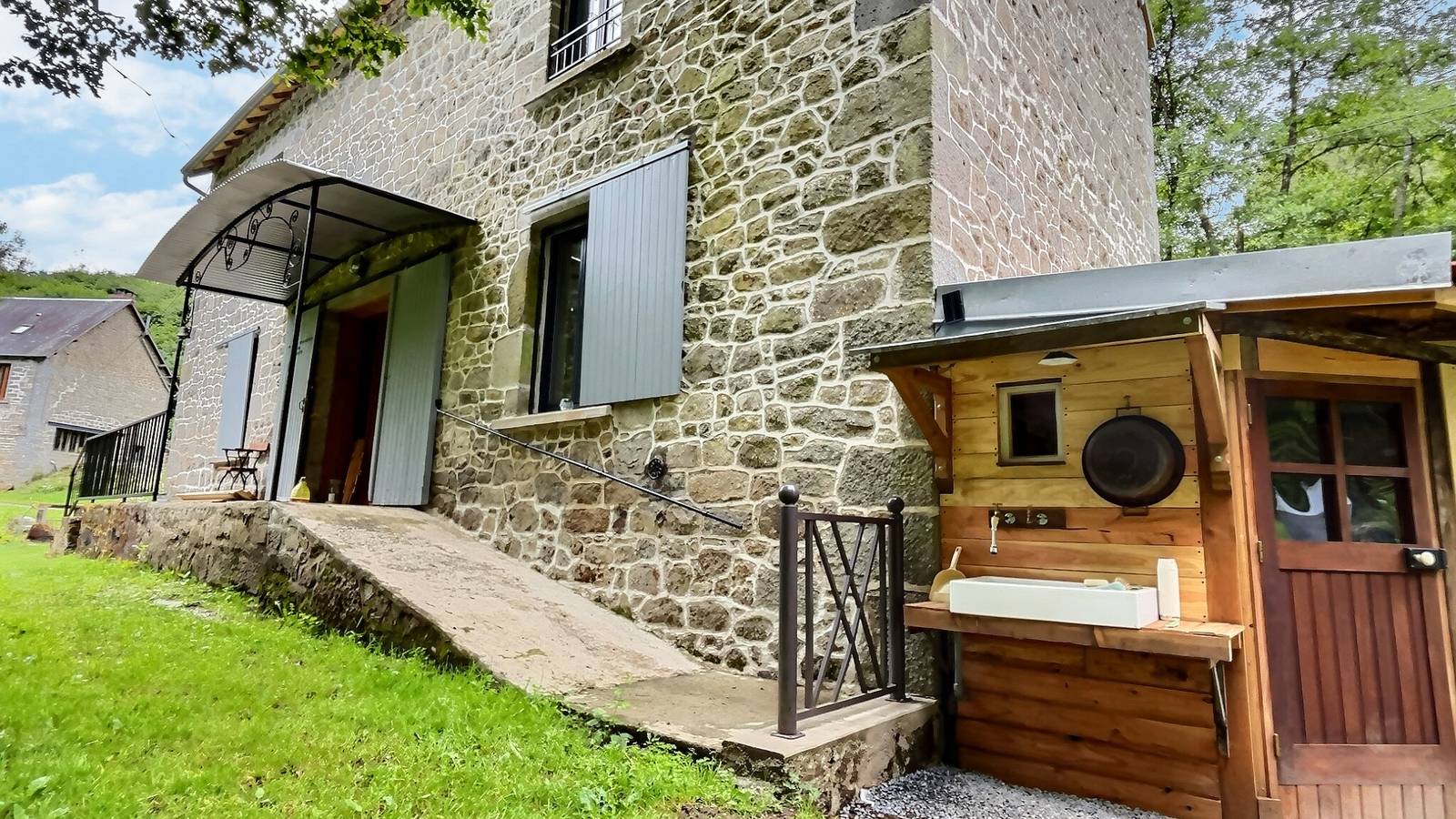 L'espace camping est ombragé à proximité de la rivière calme, repos assurés