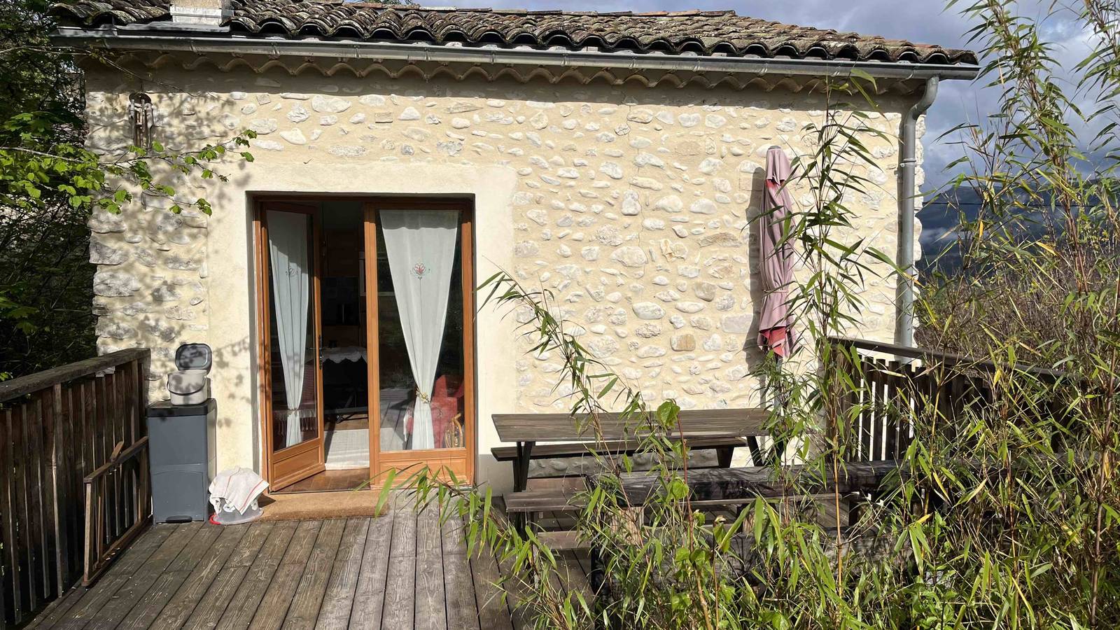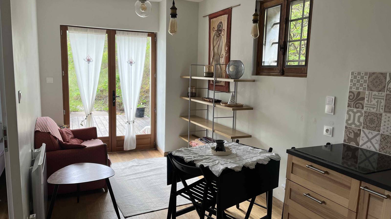 Le gîte, mitoyen à la ferme, est mitoyen de notre habitation. Il peut accueillir 4 pers. D'une surface totale de 45 m2, avec salon/cuisine, équipée, deux chambres ( 4 lits simples ou deux lits doubles en 160, une sdb / toilettes et lave-linge. Grande terrasse avec meubles de jardin et barbecue. La ferme est alimentée par 3 sources canalisées et une fontaine. Le gite avec sa salle pluriactivité peut être loué pour des stages de Yoga ou autres activités .