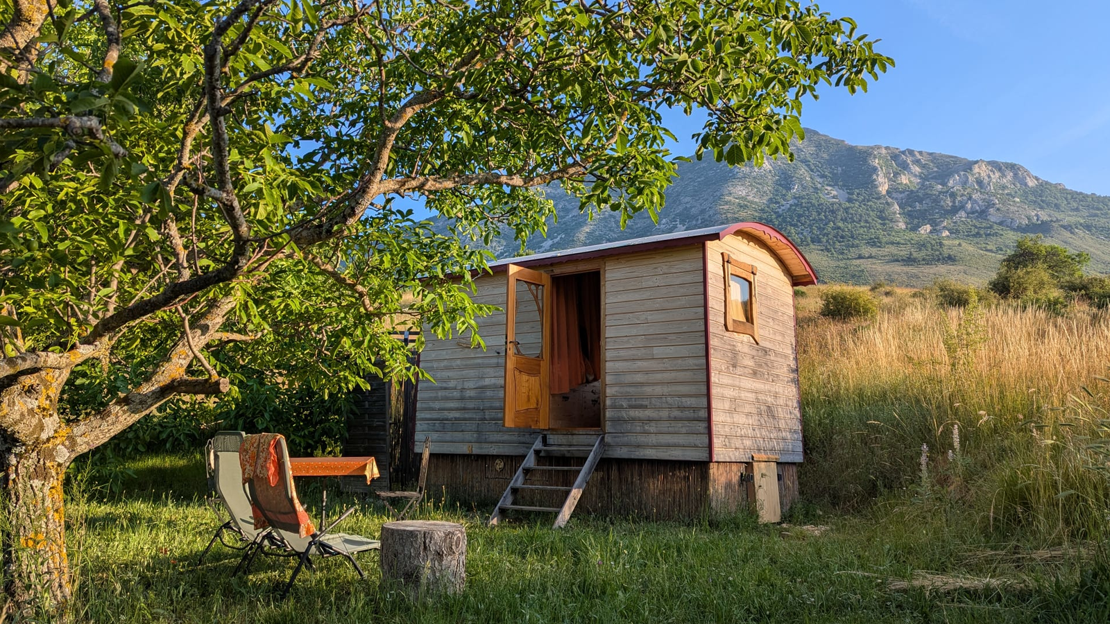 Vous serez accueillis dans une roulotte autonome et éco-responsable et bénéficierez d'une vue à 360° sur nos montagnes. A découvrir sur place, nos activités de cueillette de plantes sauvages, de tournage sur bois et animations "à la découverte du ciel étoilé". Nous faisons aussi des confitures élaborées avec les fruits de notre verger.