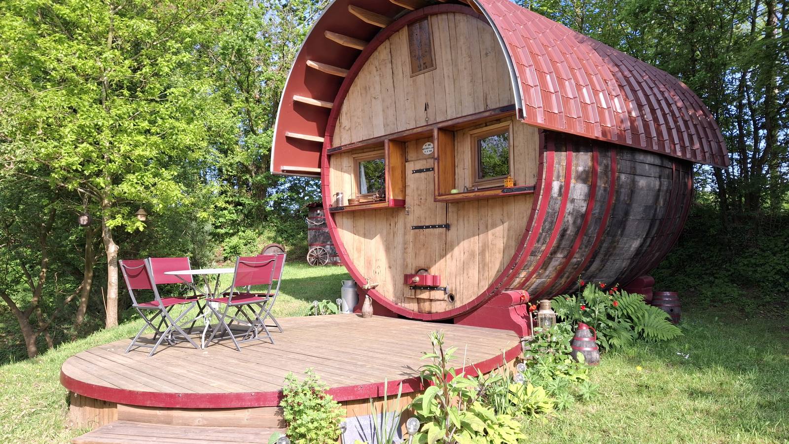 A la location : un gite pour 6 personnes et un hébergement insolite dans un tonneau géant pour 4 personnes.