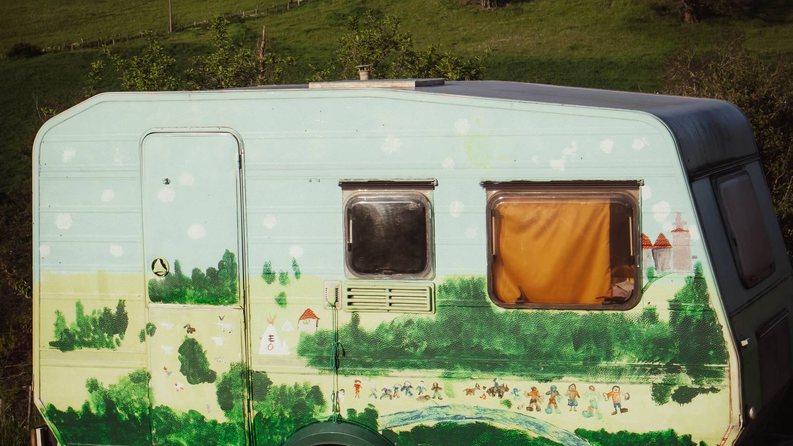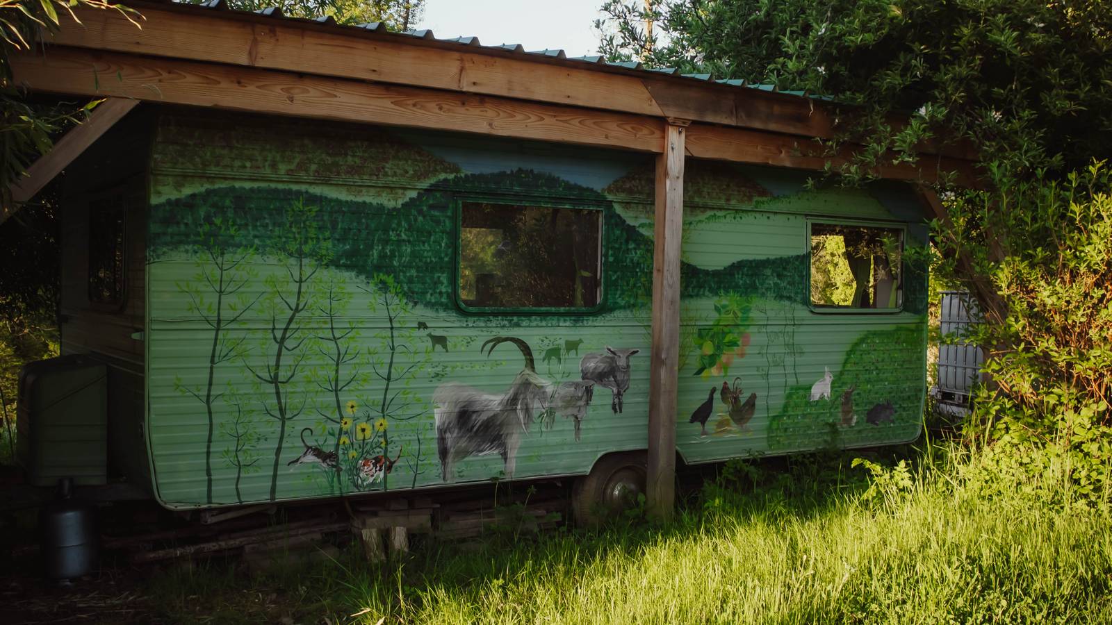 Ancienne caravane réaménagée et doublée en bois à l'intérieur. Nombreux rangements.