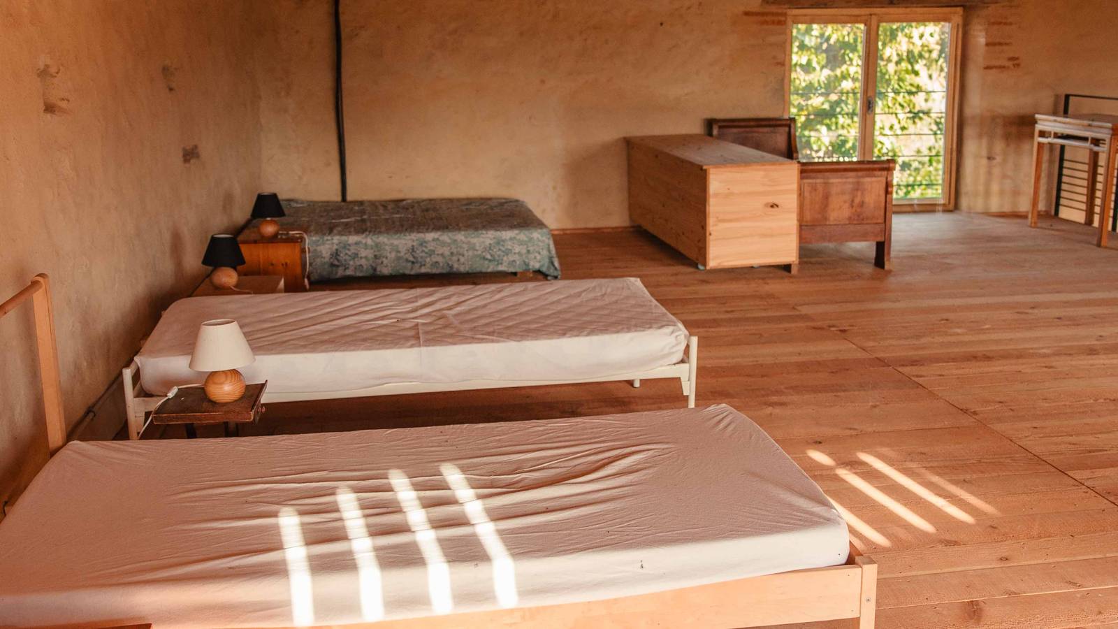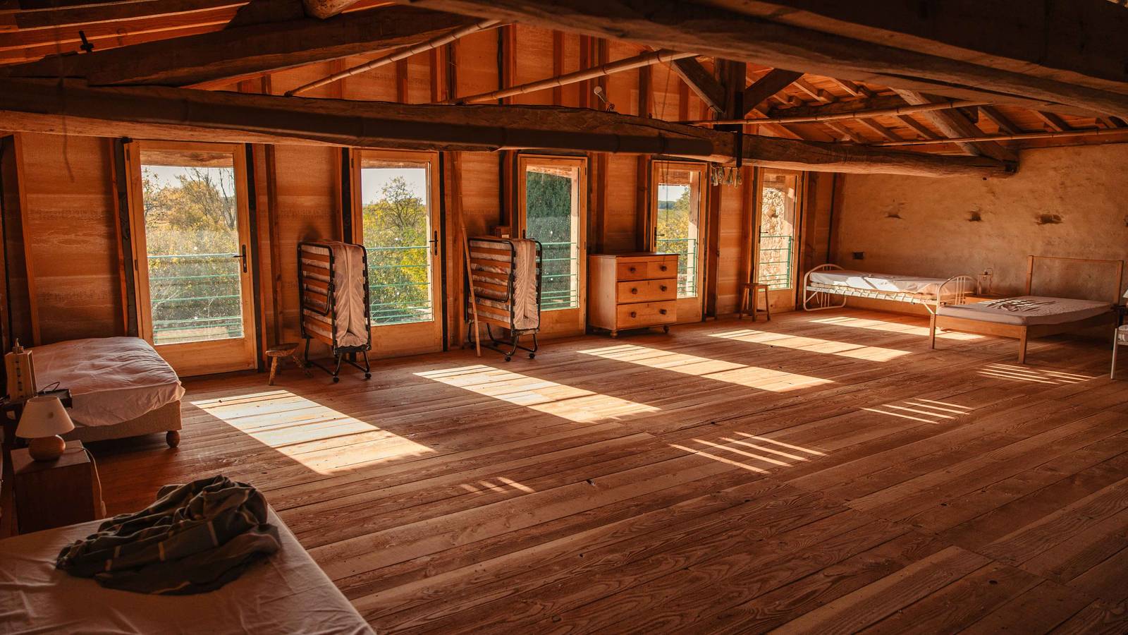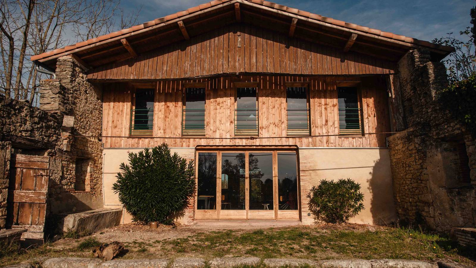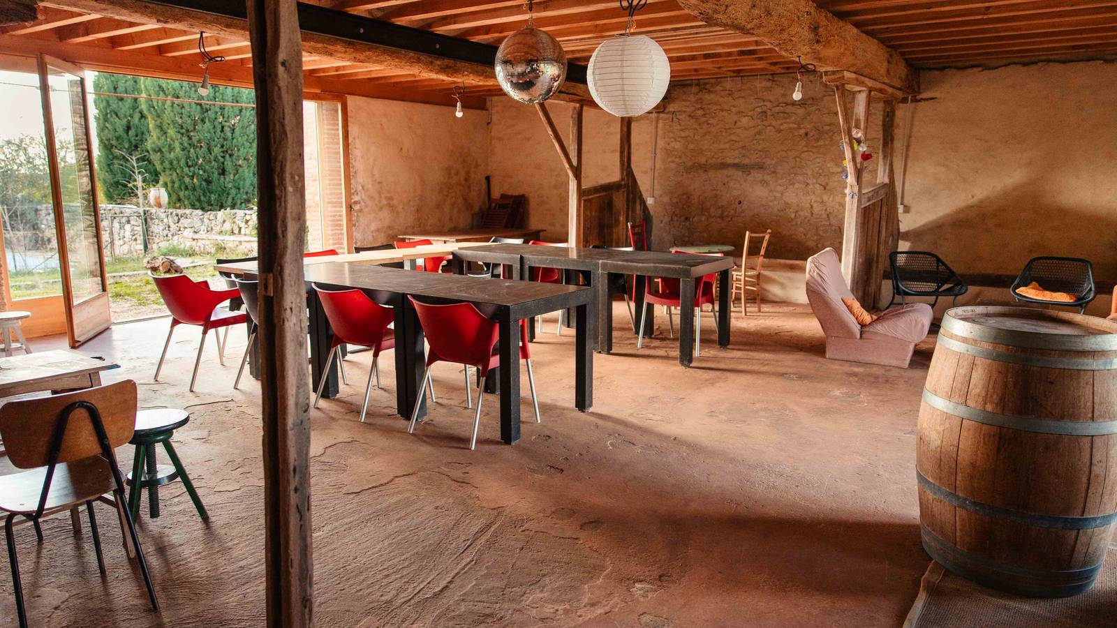 Les Terres d'En Vénac, sur 12,5ha, associent une maison familiale du 15è siècle et ses dépendances, l'activité agricole (arboriculture et pépinière), et l'association l'Étincelle (évènements culturels). La ferme, certifiée AB, produit des noisettes, de la purée de noisette, un peu d'huile et de farine de noisette, du vinaigre de figue, ainsi que des arbres fruitiers. L'hébergement de groupe se situe dans une grange rénovée et son bâtiment attenant. 'La grange' contient une salle d'activité et repas au RDC (100m2), et un dortoir équipé à l'étage (100m2, 12 personnes). Le bâtiment (30m2) abrite la cuisine et la salle de bain avec wc.