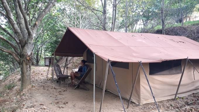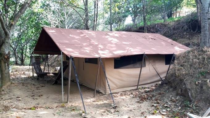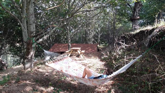 La ferme est située dans un hameau de 3 habitations. La tente safari est isolée dans une forêt de châtaignier à 60m des habitations, donc en immersion "pleine nature". Le bloc sanitaire (coin cuisine, frigo, douches et électricité) est à 30m de la tente. Celle-ci dispose de toilettes sèches à proximité. Table de pique-nique, hamac et salon de jardin africain devant la tente.