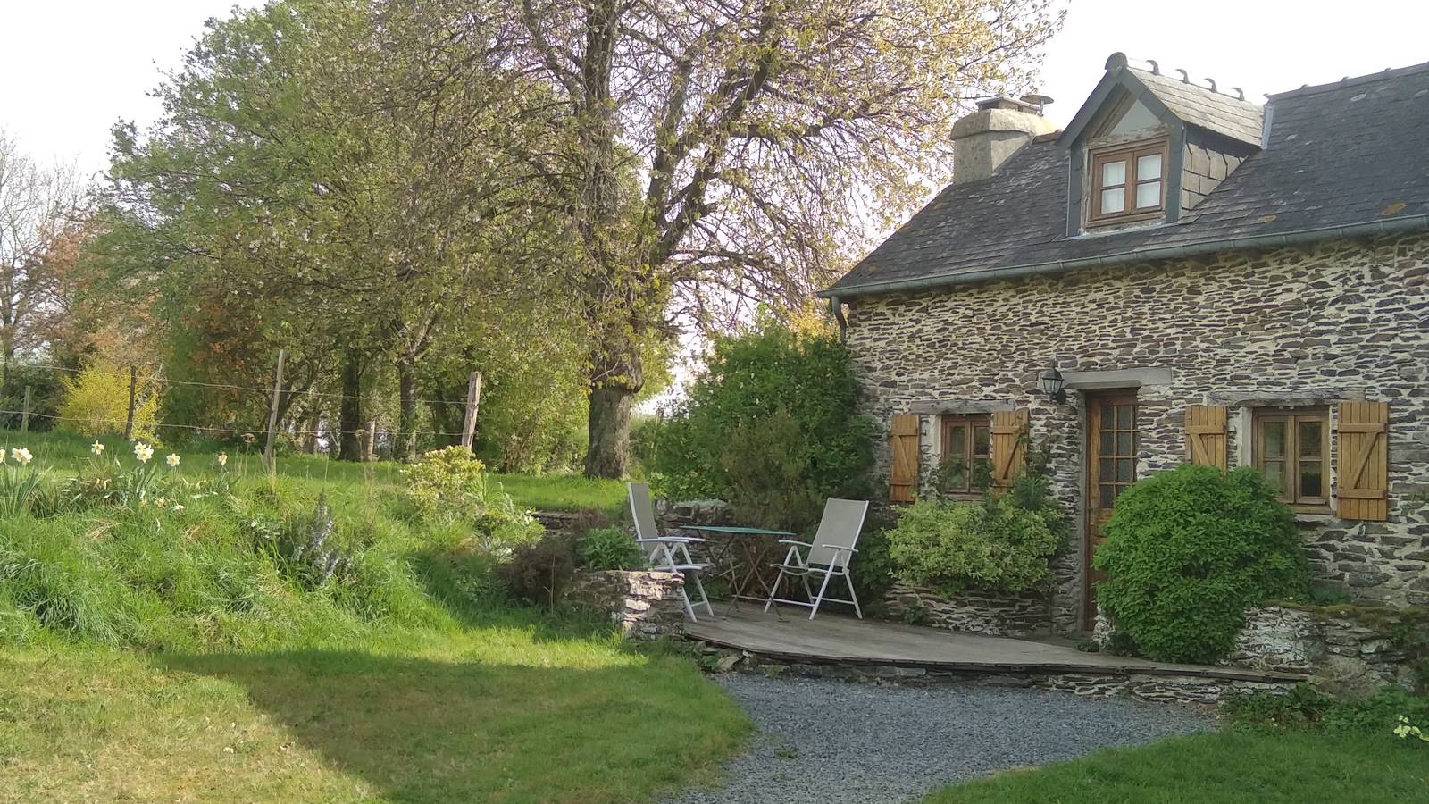 Pour vous un jardin fleuri et ombragé, quelques fruitiers dans lesquels vous être invités a vous servir (cerises, prunes, framboises, pommes et bientôt raisin) et quelques vaches qui se promènent dans les champs qui bordent la maisonnette.
