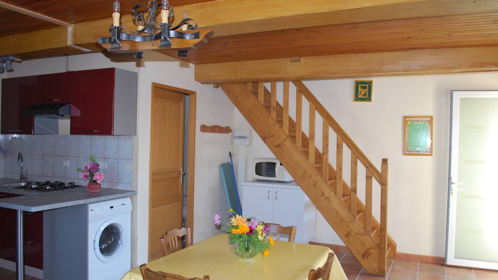 Une partie de la ferme familiale a été rénovée pour vous accueillir dans un cadre chaleureux. Gîte prévu pour 5 personnes : au rez-de-chaussée une pièce de vie avec un espace cuisine et un couchage pour une personne à mobilité réduite et une salle de bains. A l'étage 2 chambres, et à l'extérieur coin verdure et terrasse couverte.