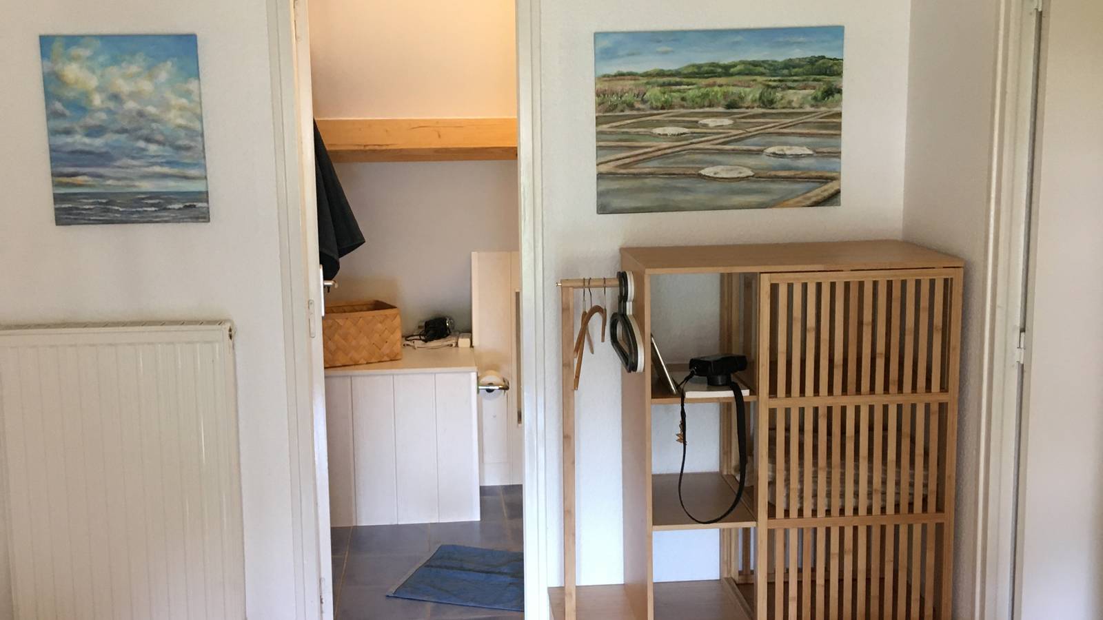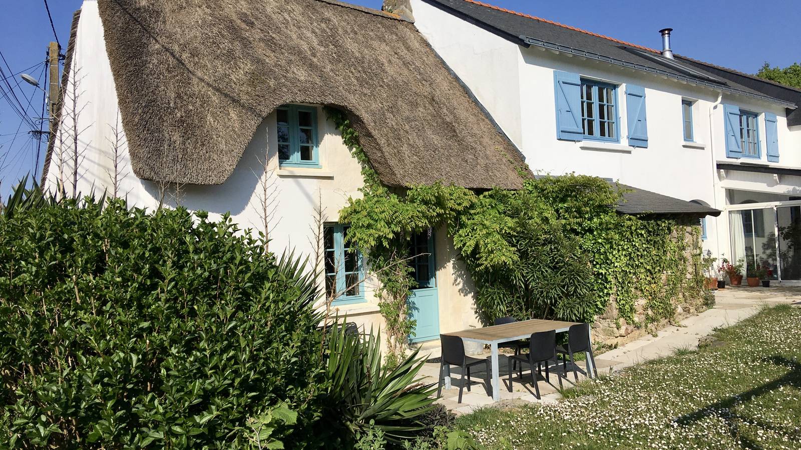 « Le Paludier » est une chaumière bretonne traditionelle. Nous l’avons rénovée en conservant les murs en pierres naturelles et argile, la grande cheminée et les poutres apparentes. Elle se trouve dans le petit hameau de „Pen d’hue“ près de St. Molf, cadre idéal pour passer des vacances tranquilles en pleine nature sur la presqu’île de Guérande. La chaumière est attenante à notre maison avec un jardin en commun. Elle comporte une chambre avec un lit double et une chambre avec deux lits simples, chacune avec salle de bains.