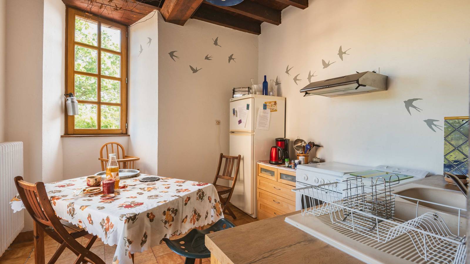 Demeure du XVI-XVIIIe, située sur la ferme. L'accueil : gîte paysan idéal pour plusieurs familles (8 places), 3 ch (2 *2 lits, 1 *4 lits), sdb, grande salle à manger (55m2). Calme, convivialité. Paysans bio (60 vaches, poules/chat), notre accueil répond au besoin de partager notre lieu de vie et notre travail. Notre proposition vous intéresse ? Venez nous rencontrer! Nous proposons un tarif pour 4-6-8 personnes, contactez nous! 4 p: 360€/semaine; 6 p: 410€/semaine; 8 p: 500€/semaine.