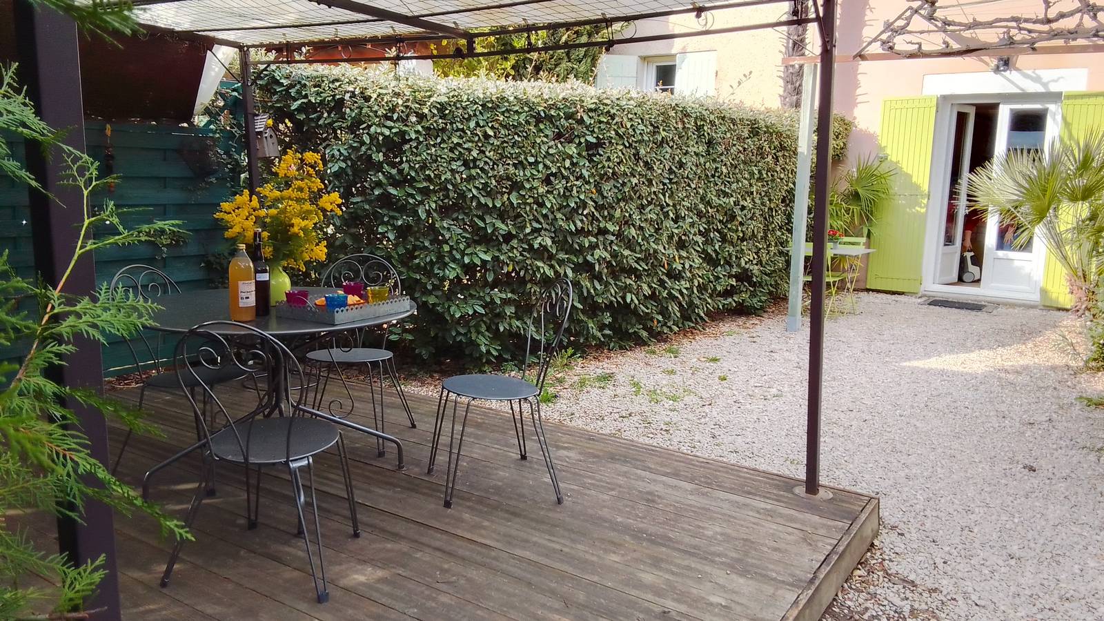 Paysans bio retraités . potager et verger avec nombreuses espèces et variétés de fruits et légumes , petit poulailler . Gîte les Bambous 30m2 (2 pers) :chambre clim,salle d'eau, cuisine aménagée équipée,salon, TV(DVD).Jardin 90m2 ombragé,parking.