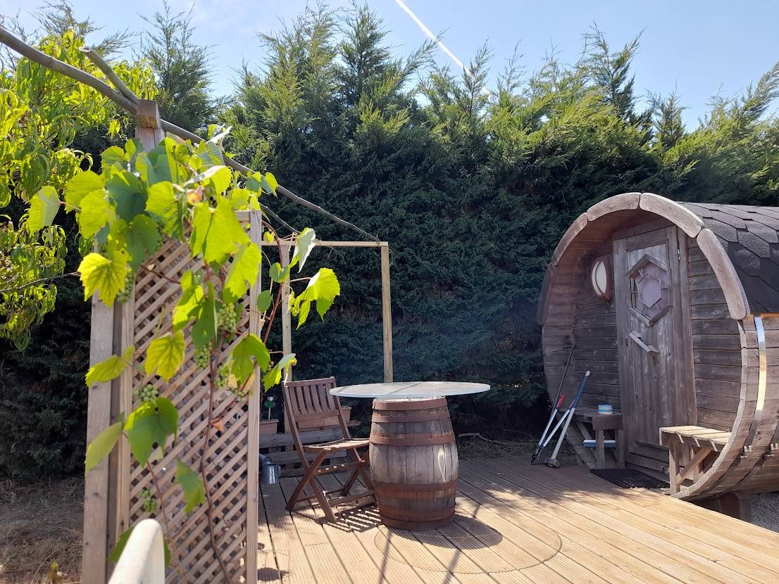 Vigneron récoltant, petite structure traditionnelle de 3 ha. Au dessus de notre cave, 2 chambres d'hôtes en éco-construction esprit chalet, terrasse panoramique sur coteaux de la Sèvre et le vignoble , salles d'eau et WC privatifs ; couchage 4 personnes ( 2 lits 160 séparables sur demande) , lit bébé et/ou enfant . pièce de vie commune avec coin cuisine, petit salon ( BZ couchage 140 ) . Formule gîte possible weekend et séjours courts